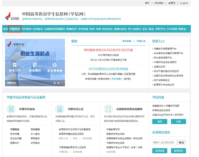 進(jìn)入 學(xué)籍查詢